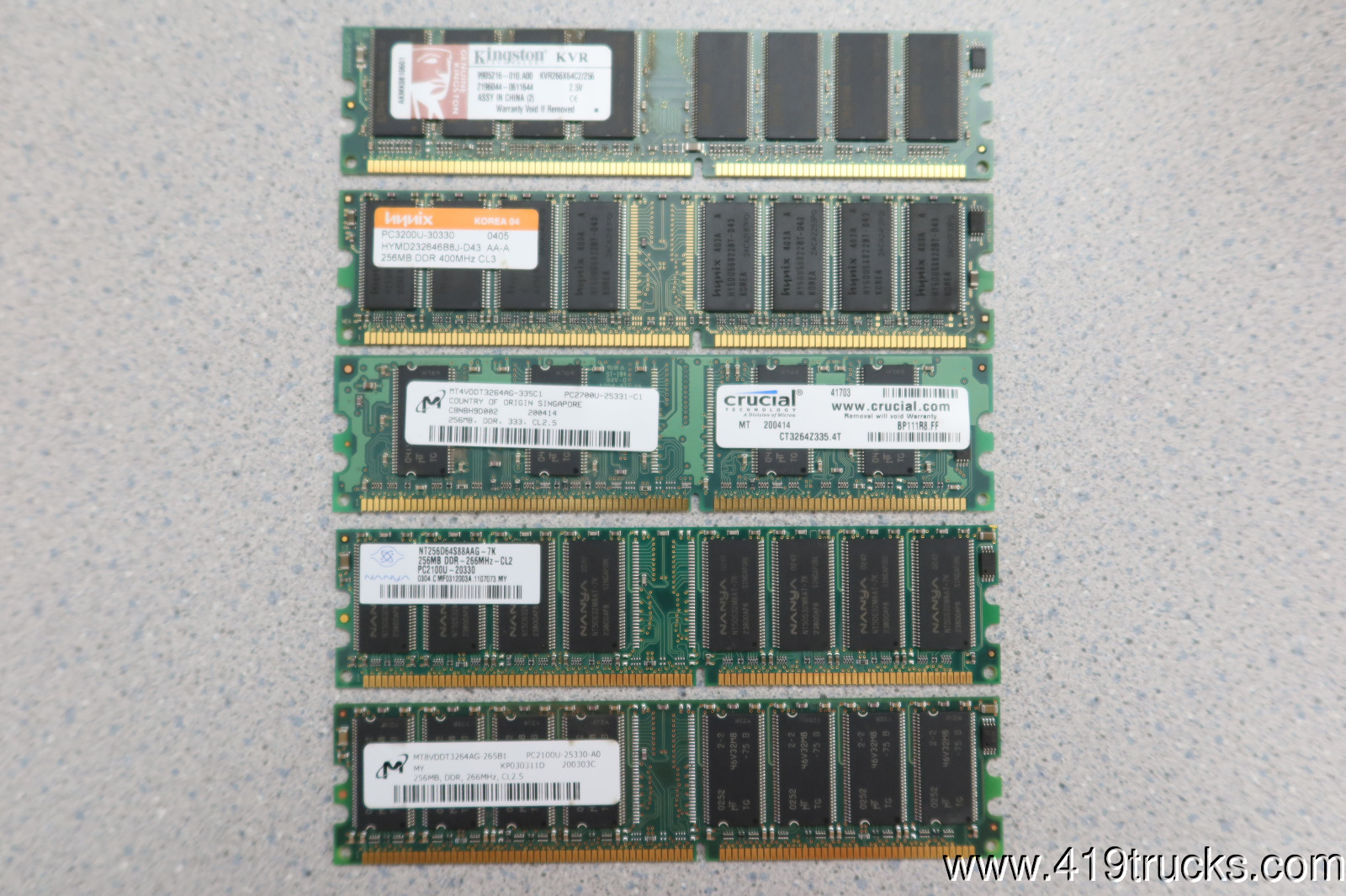 Lot of 5 256mb DDR PC 2100 PC 3200 PC2700 Computer Memory RAM 266mhz 400 mhz